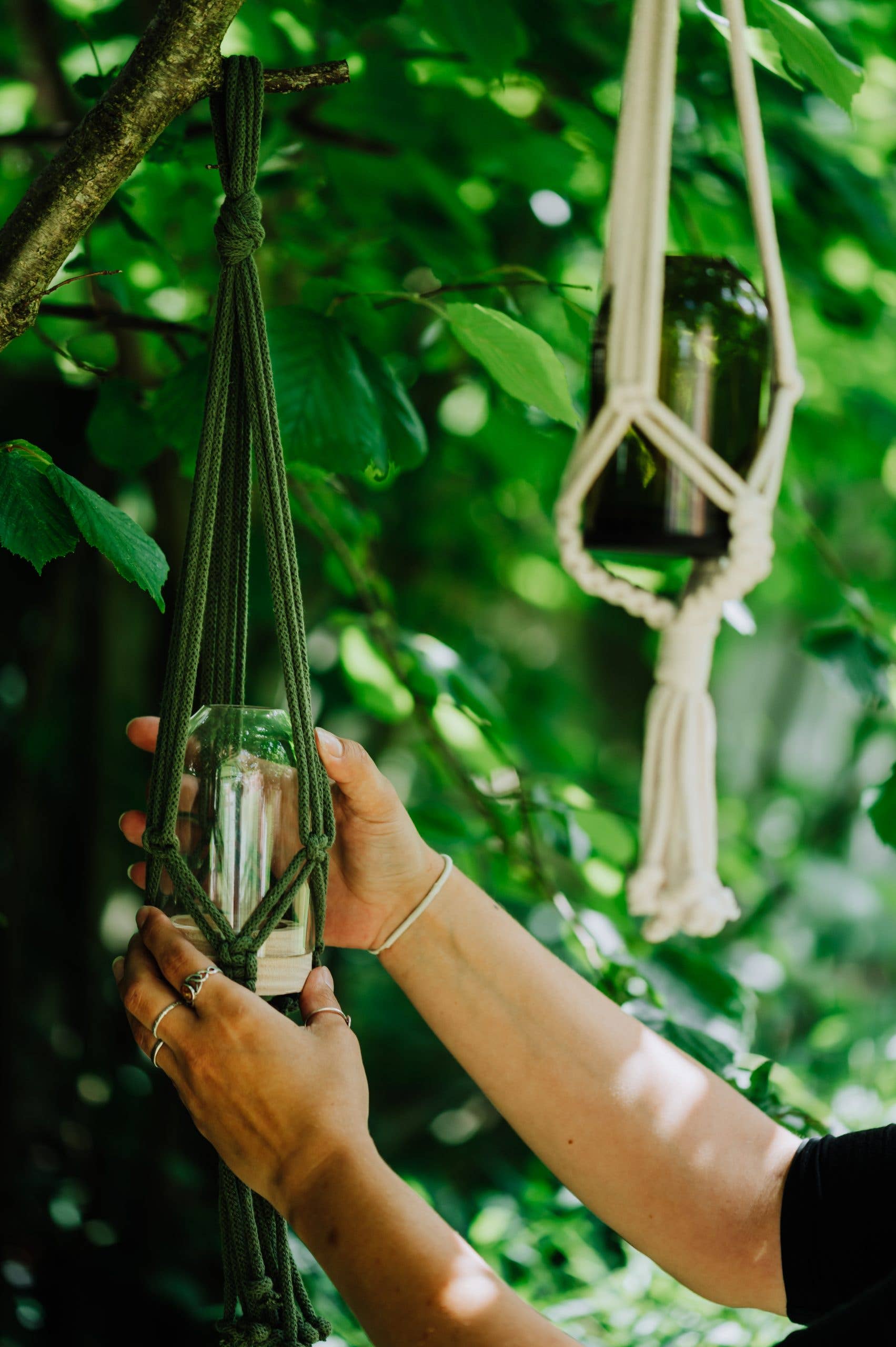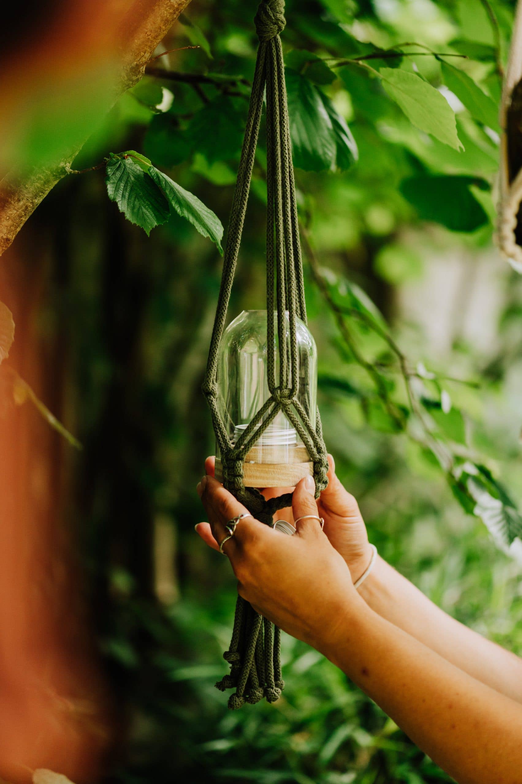 Transform your outdoor and indoor spaces with a versatile glass tealight dome and plant pot holders. Handcrafted from eco-friendly Oeko-Tex cotton cord and combined with our repurposed glass tealight domes, these cord hangers from Old Green Dorset studio add a touch of magic to any setting. They are available in four earthy tones to match your decor; mustard, khaki, natural and rust. Note: This is for the Cord Hanger only. Glass domes are sold separately.